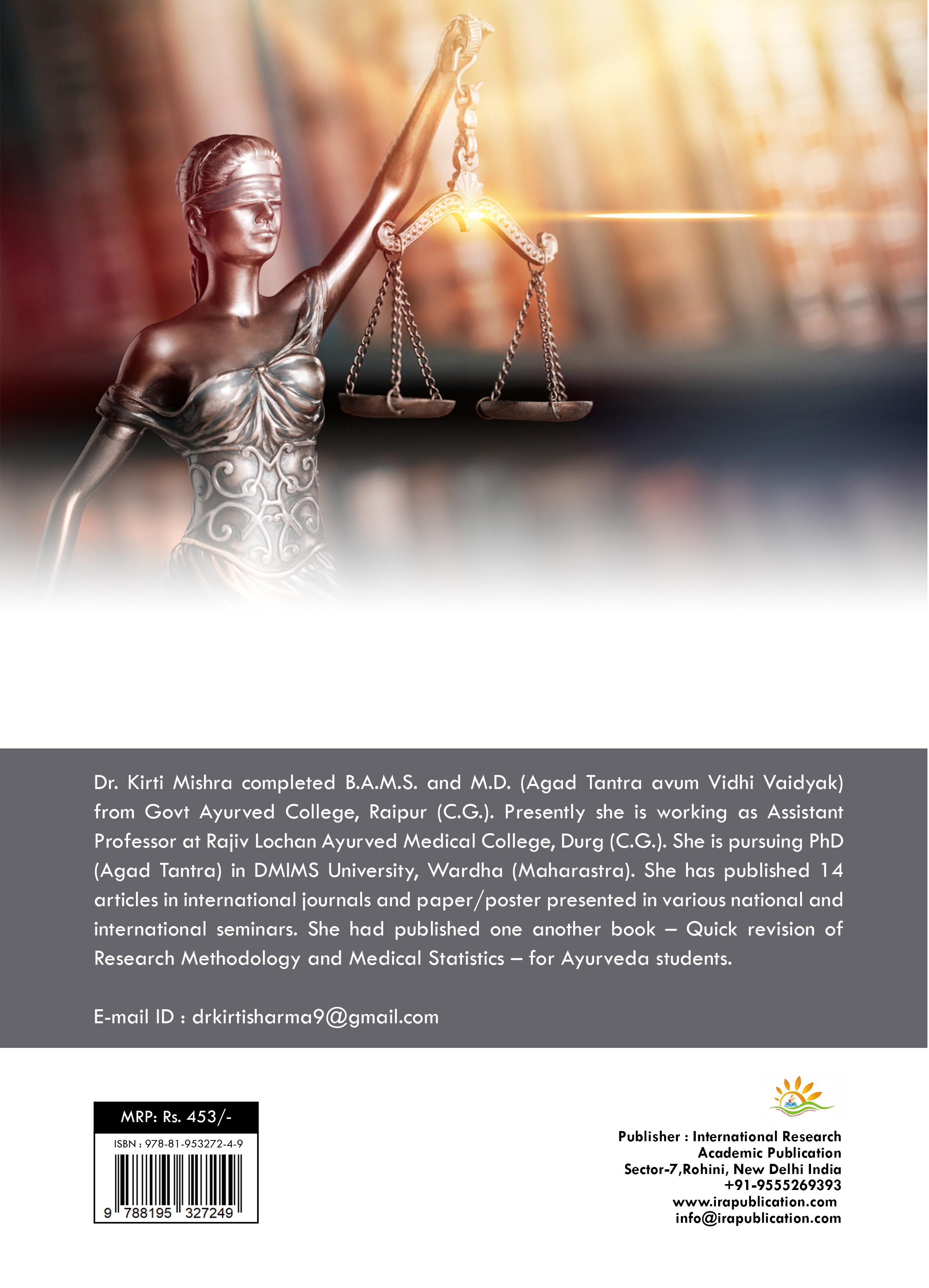 This book – A text book of Nyaya Vaidyaka (Forensic Medicine and Medical Jurisprudence- For Ayurveda students) has been designed to help U.G. and P.G. Ayurveda students prepare for theory exam and this book have covered all the syllabus points given by NCISM.
